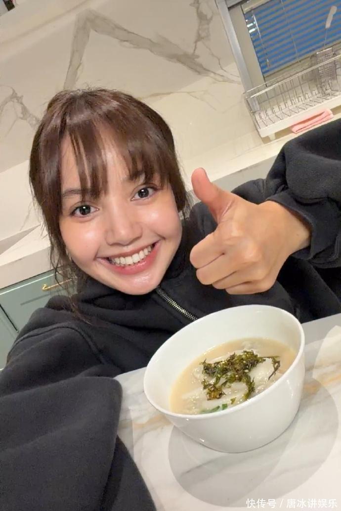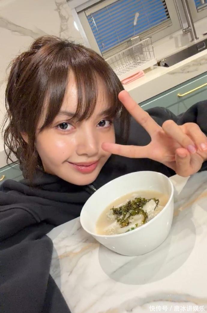 在镜头中的Lisa,淡妆搭配随意挽起来的头发,像极了日常窝在家里的普通女孩儿!做起美食也是有模有样!最后的成品,也是很有食欲!